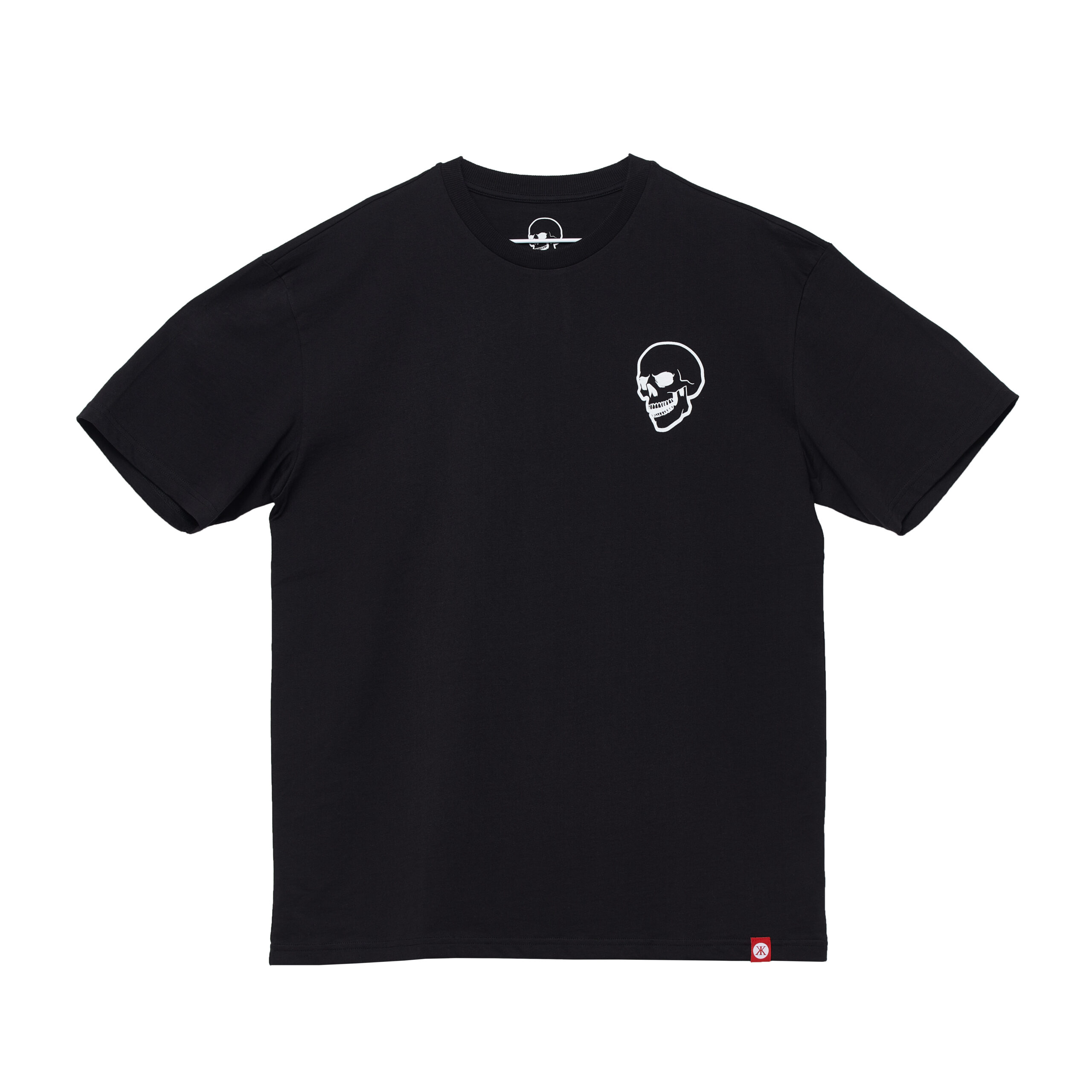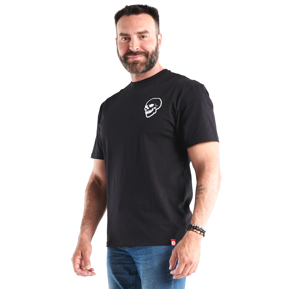 Uno de los detalles más destacados de esta camiseta es la elegante línea blanca que baja por la espalda. Este toque sutil pero sofisticado añade un elemento de interés visual, transformando una prenda básica en una opción de moda única. La línea blanca crea un contraste llamativo con el fondo negro, captando la atención y aportando un toque de originalidad y distinción.