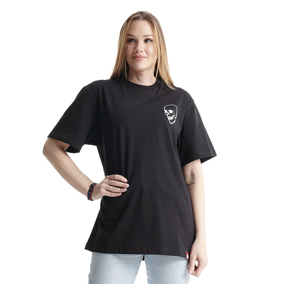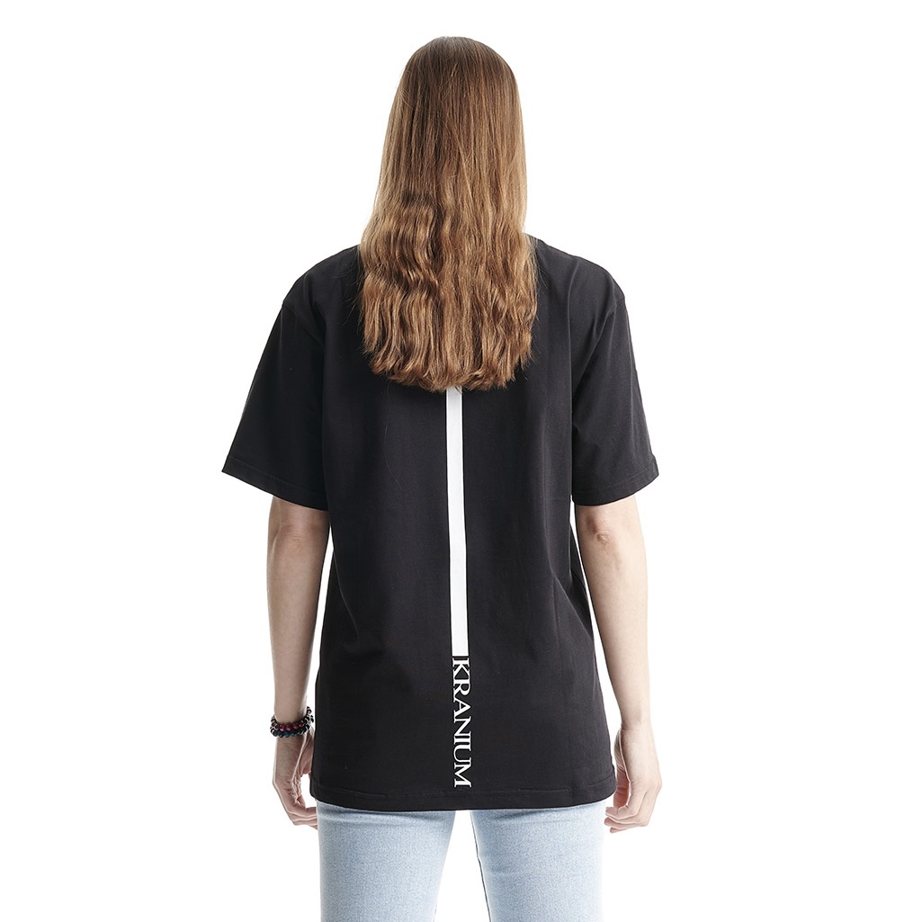 Perfecta para combinar con jeans, leggings o incluso una falda, la camiseta negra Kranium oversize es una adición versátil a cualquier guardarropa. Ya sea para un día casual o una salida nocturna, esta prenda te permitirá lucir a la moda sin esfuerzo. Con su alta calidad y diseño innovador, se convertirá rápidamente en una de tus favoritas.